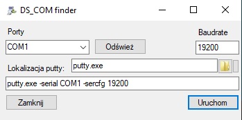 Oprócz samego wykrywania portów COM, możliwe jest uruchomienie terminala, np. putty – potrzebne szczególnie przy pracy z mikrokontrolerami. Jeżeli został „zainstalowany” terminal putty, nie trzeba wskazywać jego lokalizacji na dysku. W przeciwnym razie, należy wcisnąć przycisk z ikonką folderu i wskazać lokalizację programu putty. Dodatkowo, można skonfigurować wartość baudrate z jaką będzie się dane urządzenie komunikować.