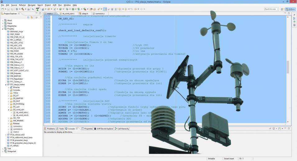 W tej części omówię w kilku słowach programową obsługę czujników które zostały wykorzystane w stacji meteo – prędkości i kierunku wiatru, ilości opadu, temperatury, ciśnienia, oraz wilgotności. Przedstawiony zostanie również szkielet programu. Obsługa czujnika prędkości wiatru. Podczas jednego obrotu czujnika…